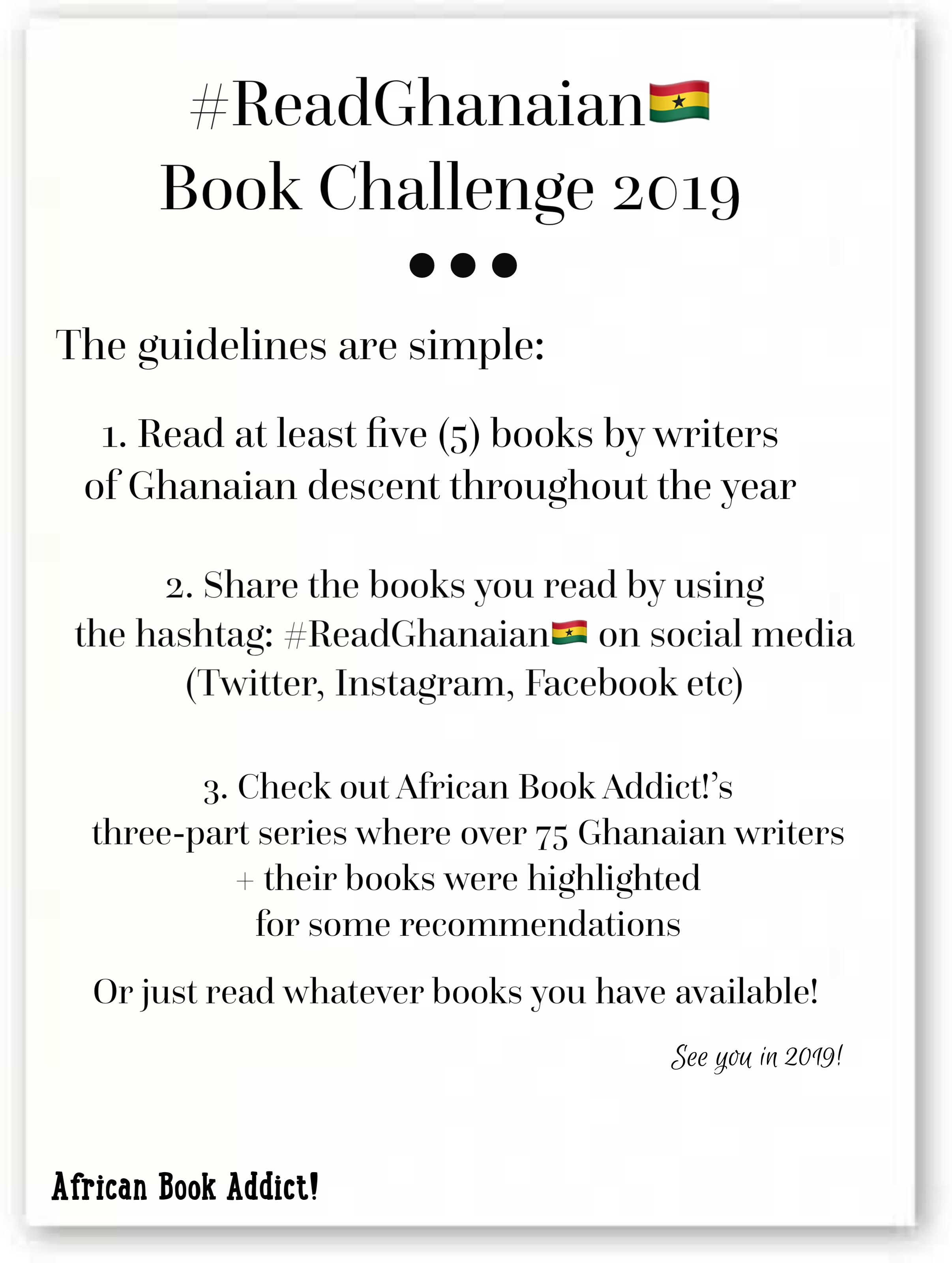 As a Ghanaian, its important for me to read and celebrate the work of writers from my homeland. I recently decided (on Twitter) to start the #ReadGhanaian Book Challenge. Ever since I announced the book challenge with the guidelines (below), many other readers seem to be participating as well! I hope to read at least 5 books by Ghanaian writers this year. Please join me in this challenge, if you can! Ghanaian literature is so underrated.